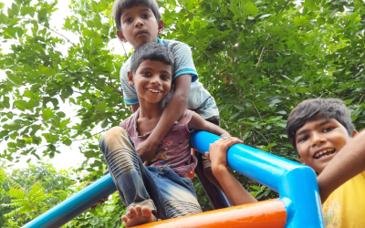 Playscape Detail: The playscape was built in a school for rescued children and children who had dropped out of school previously. The project was executed with the support of Goodera and Amazon, with Amazon employees coming in for the community engagement to paint the playscape and interact with the children.